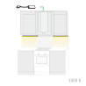 In kitchen and utility room backsplashes, profile lights are typically installed along the full length of the upper cabinets – either centered, near the front edge, or at the rear, depending on the model. Corner lights are placed where the backsplash meets the underside of the cabinet. Profile lights deliver sufficient illumination even above the stove. If you prefer a recessed installation into a groove, be sure to choose a model specifically designed for that purpose.