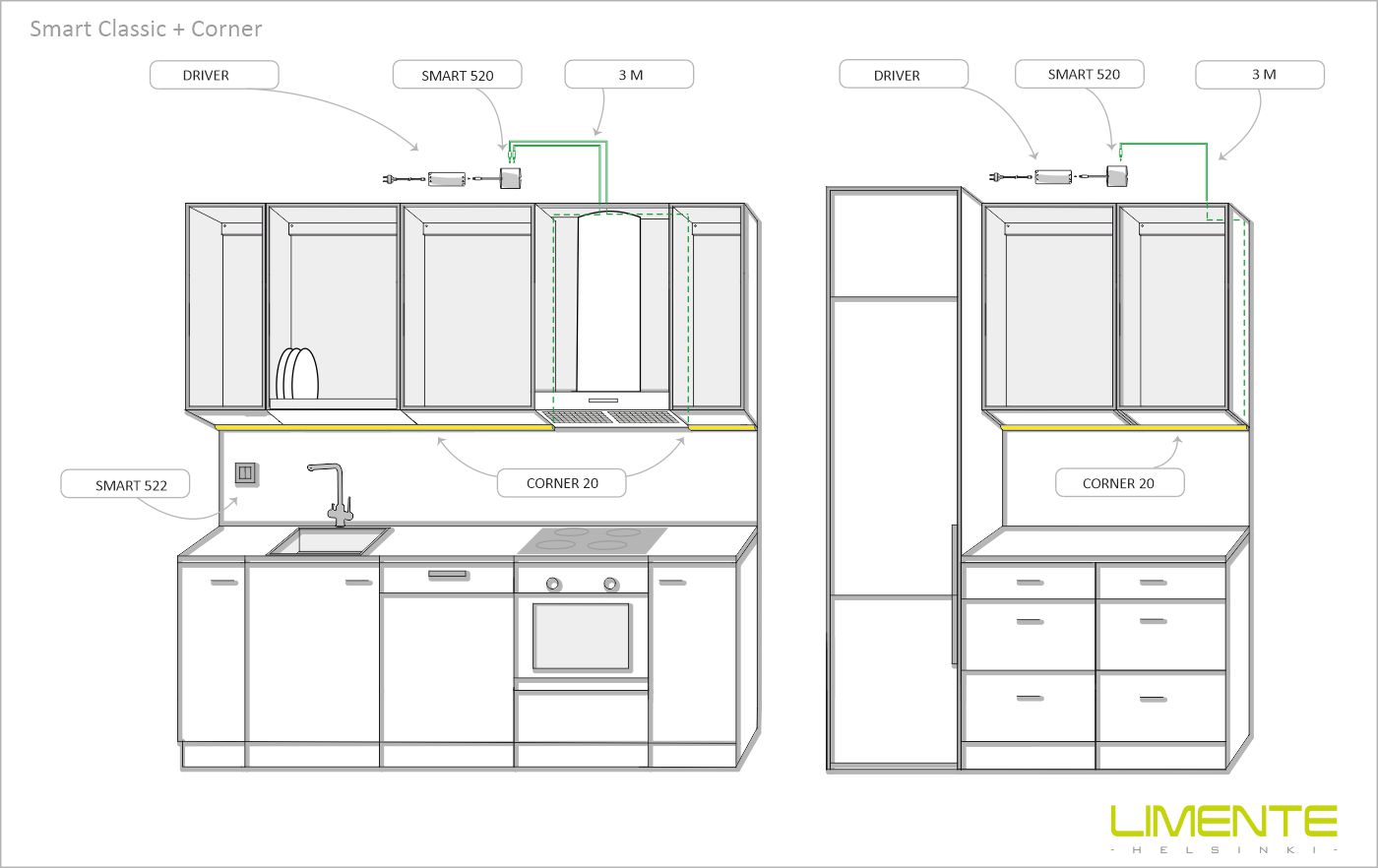 LIMENTE SMART 520 receiver and 522 controller included in the basic set can be used to control one lighting group at a time. If you want to control more than one separate group, you must order a separate dimmer part (640520) for each group. The starter kit contains one dimmer part. The lighting group always means all the lights connected to one power supply, i.e., you always need one dimmer part for each power supply.