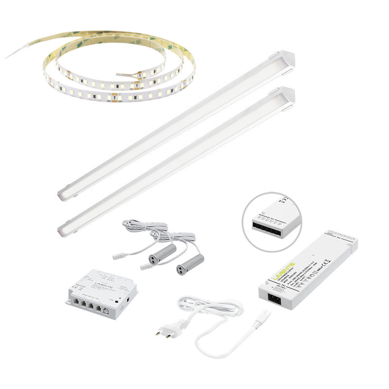 More information muokkaa evästeasetuksiaLIMENTE cabinet set is a versatile solution that includes everything you need to equip your cabinet. The set is complete, including a vertical or horizontal profile light, driver, and sensor that turns on the lights when you open the cabinet door.