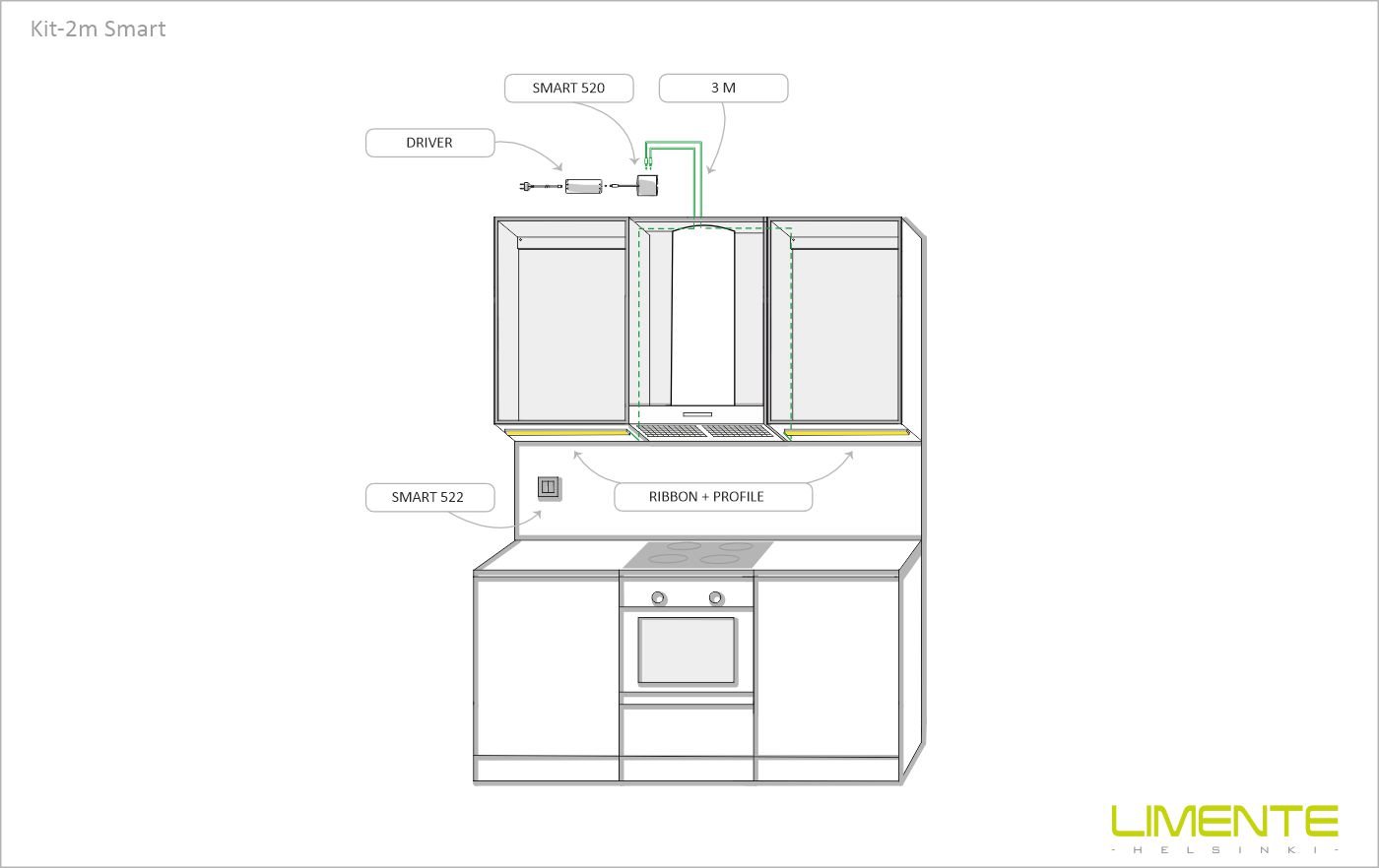 See the installation pictures for tips on how the profile can be placed in the kitchen as a working ligh. The kitchen workspace set is available in two lengths, 2 m and 4 m with and without light control.