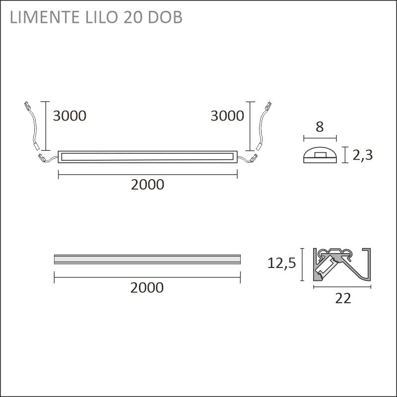 LIMENTE LILO DOB is available in standard lengths of 2 and 4 meters. The fixture can be shortened to a desired length at about 3 cm intervals. The luminaire offers excellent efficiency (up to 144 lm/W), near-perfect color rendering (CRI>90), a luminous flux of 1300 lm/m, and a color temperature of either 3000K or 4000K. All lighting values are specified for the LED strip without a cover. All technical values are given to the led strip without a diffuser.