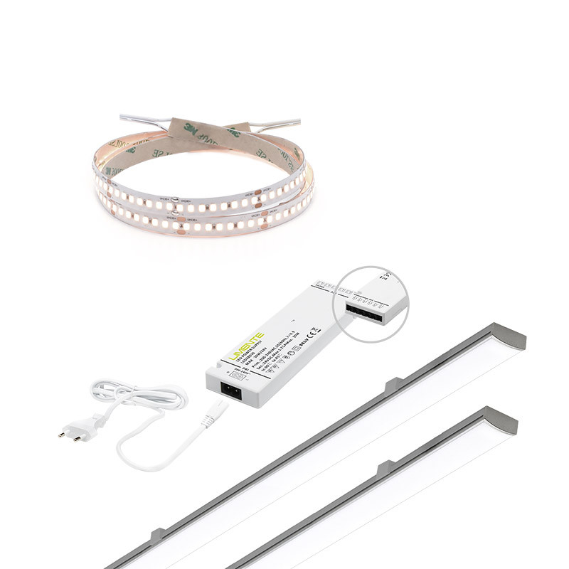 The kitchen workspace set is delivered complete so that in addition to the profiles, the corner pieces and the LED strip, the power supply is also included in the delivery.