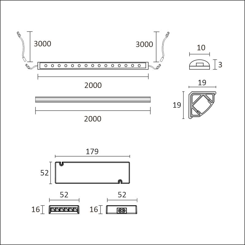 The power supply cable (hidden behind the cabinet, for example) is placed in place so that the male connector comes close to the power supply and the female connector close to the profile. The power supply cable at both ends of the LED strip allows the luminaire to be used as two separate pieces. The profile can also be used in full length (2 m or 4 m), in which case the power supply cable at one end is cut off. The LED strip can be shortened every 3.3 cm to the desired length. A fixed 5 cm + detached 300 cm long cord is standard at both ends. If this is not enough, you can order an extension cable (3 m), product number 681588. Extension cables can be connected for max. 1 pc / luminaire cable, with a maximum cable length of up to 6 meters. Be sure to take into account the adequacy of the length of the luminaire wires and the fact that the maximum load (W) of the power supply is not exceeded.