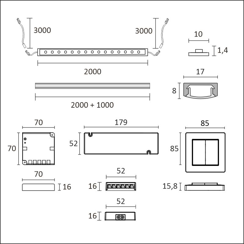 The kitchen workspace set is delivered complete so that in addition to the profiles the LED strip and the power supply is also included in the delivery.