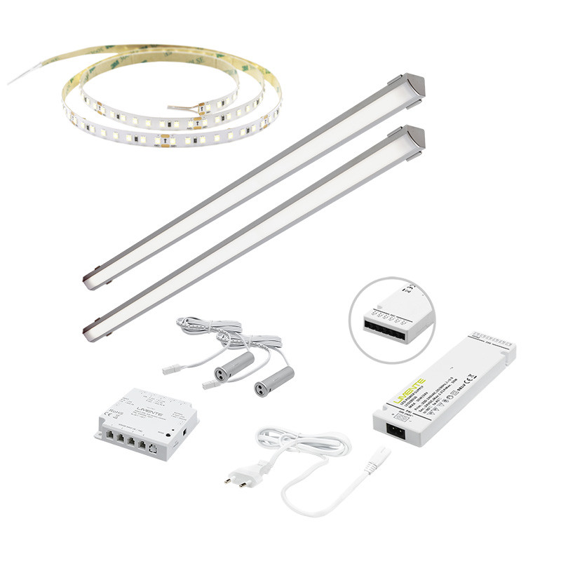 Lisätietoja muokkaa evästeasetuksiaLIMENTE aamiaiskaappisetti on monipuolinen ratkaisu, joka sisältää kaiken tarvittavan aamiaiskaapin varustamiseen. Setti on täydellinen sisältäen pystyyn tai vaakaan asennettavan valoprofiilin, virtalähteen ja tunnistimen, joka sytyttää valot, kun kaapin oven avaa.