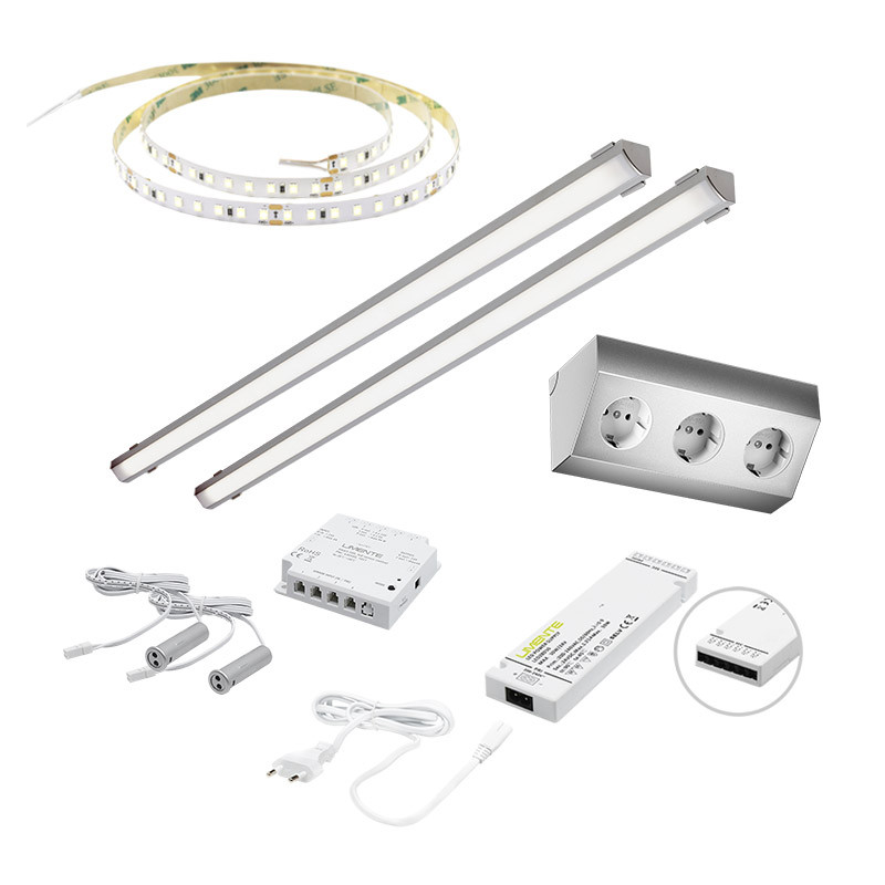 Lisätietoja muokkaa evästeasetuksiaLIMENTE aamiaiskaappisetti on monipuolinen ratkaisu, joka sisältää kaiken tarvittavan aamiaiskaapin varustamiseen. Setti on täydellinen sisältäen pystyyn tai vaakaan asennettavan valoprofiilin, virtalähteen ja tunnistimen, joka sytyttää valot, kun kaapin oven avaa sekä pistorasian.