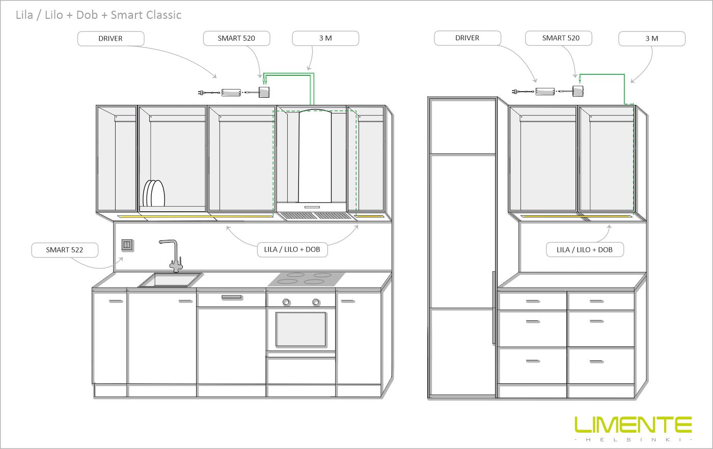 LIMENTE DOB-COM vakiopituudet ovat 2, 3 ja 4 m ja led-nauhan voi lyhentää haluttuun mittaan noin 3 cm välein, mikä mahdollistaa erilaiset yksilölliset ratkaisut. DOB-mallissa käytetään vakiona vain parhaita komponentteja ja sen hyötysuhde on erinomainen, värintoisto on lähes täydellinen (valaistavan kohteen värit toistuvat mahdollisimman luonnollisina) ja värilämpötila joko 3000K tai 4000K.