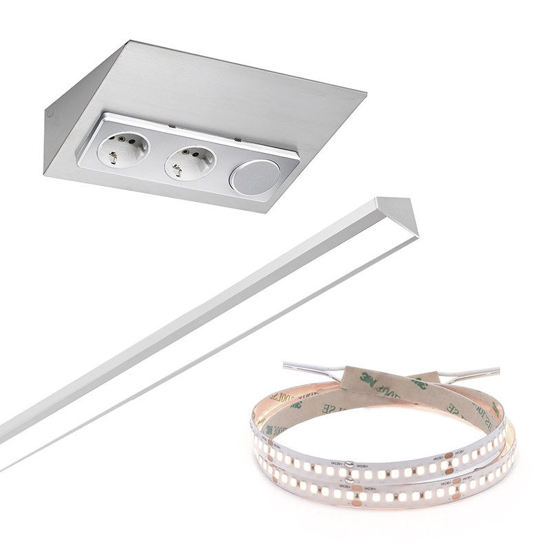 Led-nauhan molemmissa päissä oleva virransyöttöjohto mahdollistaa valaisimen käyttämisen kahtena erillisenä valaisimena. Profiilia voidaan käyttää myös täysimittaisena (2 m), jolloin toisen pään virransyöttöjohto katkaistaan. Led-nauha on lyhennettävissä 5 cm välein haluttuun mittaan. Molemmissa päissä on vakiona kiinteä 5 cm + irrallinen 300 cm pitkä johto. Mikäli tämä ei riitä, voit tilata jatkojohdon (3 m), tuotenumero 681588. Jatkojohtoja voi liittää max. 1 kpl / valaisimen johto, jolloin johtojen maksimipituus on jopa 6 metriä. Muista huomioida valaisimien johtojen pituuden riittävyys sekä se, ettei virtalähteen maksimikuorma (30 W) ylity.