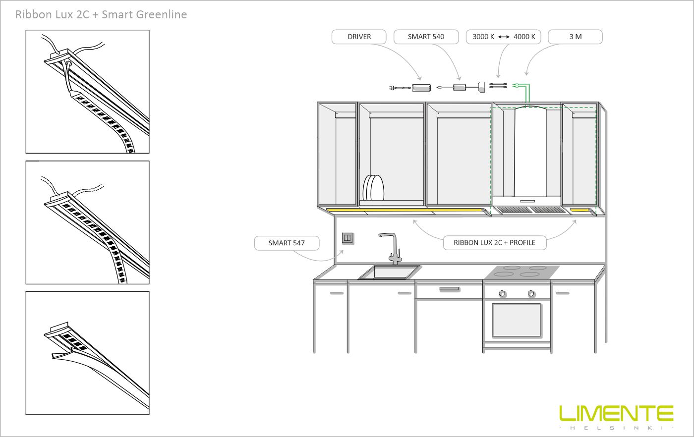 Mera information customize cookiesLIMENTE RIBBON LUX 2C LED-strip tillhör produktfamiljen LIMENTE RIBBON, vars speciella egenskap är en inbyggd färgtemperaturväxling (3000K och 4000K), vilket också är en välkänd funktion i Limentes skåpbelysning. Färgtemperaturväxlingen förenklar produktdesignen, eftersom du inte behöver välja färgtemperatur i förväg. Den kan enkelt ändras under installationen eller senare av användaren.