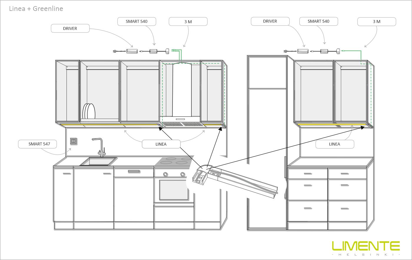 LIMENTE LINEA DOB går snabbt och enkelt att installera. Strömkabel (kan gömmas t.e.x bakom köksskåpet) och läggs färdigt på plats så att den ena endan kommer nära transformatorn och den andra nära profilen.