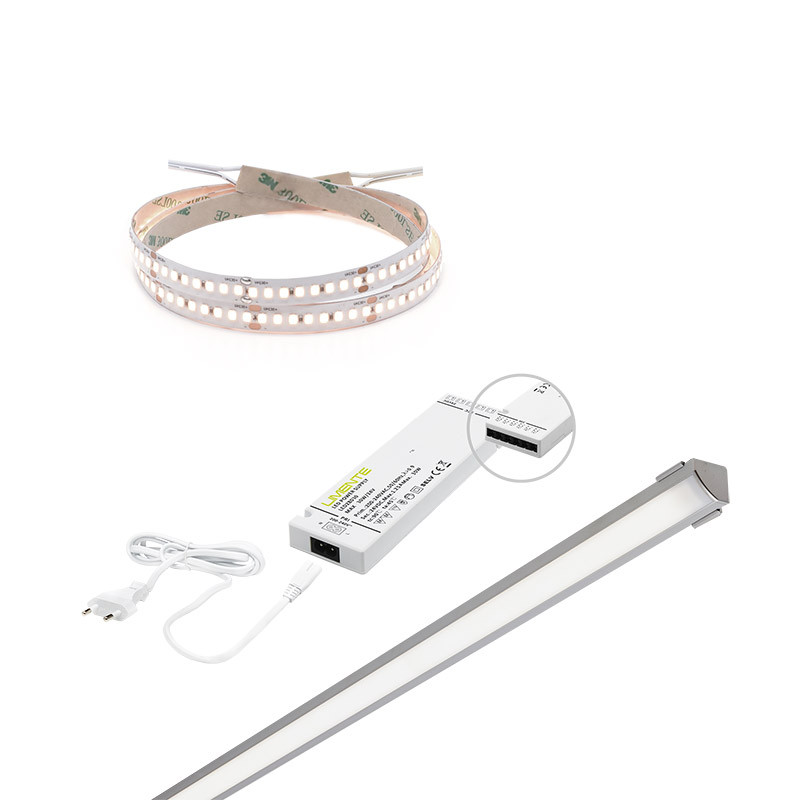 Belysningsset Corner RibCom 2m 4000 K, 1512 lm/m, CRI>85 | aluminum/svart/vit