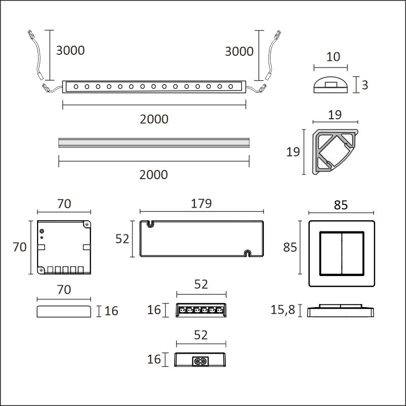 Belysningsset COM-12 2m + dimmer 3000 K, 1380 lm/m, CRI>85 | aluminum/svart/vit