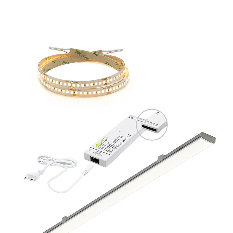 Belysningsset Linea RibCom 3K 2m 3000 K, 1380 lm/m, CRI>85 | aluminum/svart/vit