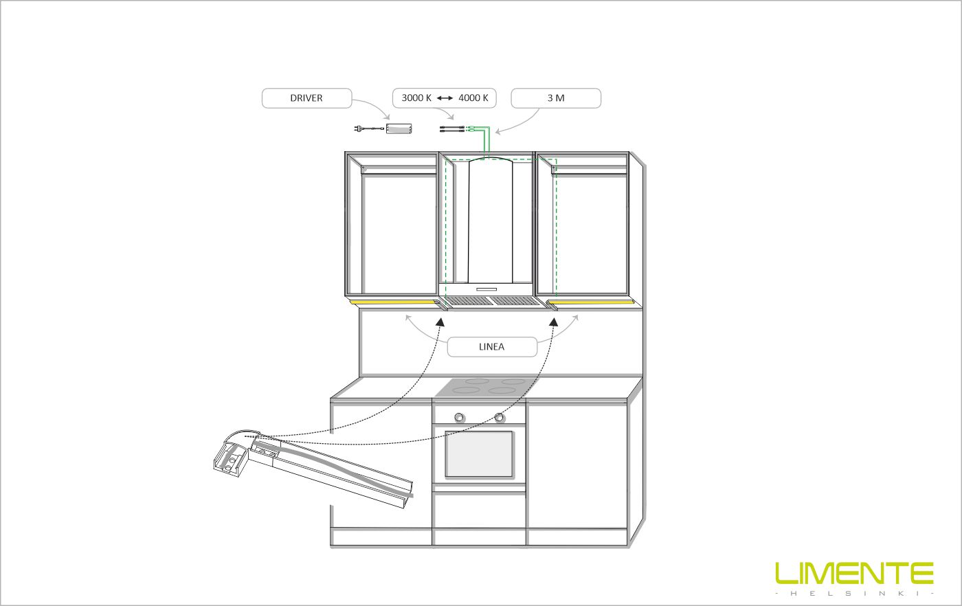 Belysningsset Linea Rib2C 2m 3000/4000 K, 1510 lm/m, CRI>90 | aluminum/svart/vit